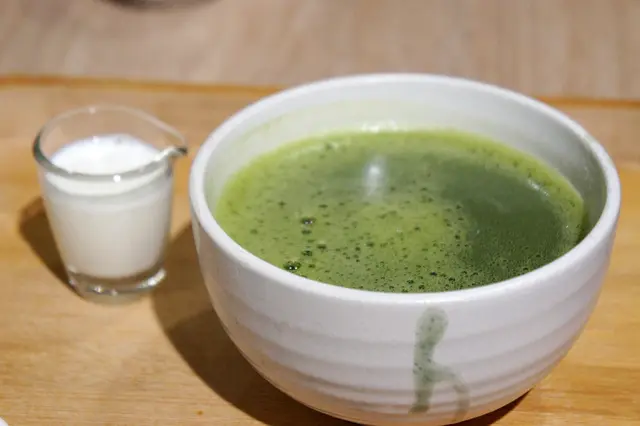 倒入鮮奶後,像抹茶牛奶一樣溫潤好喝