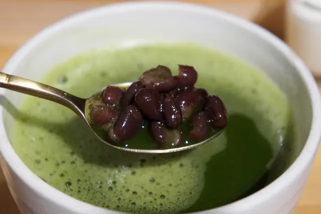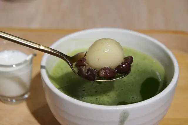 裡頭有紅豆及白玉,先嚐嚐原味,是很純粹的抹茶清香