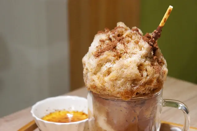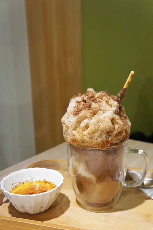 新鮮的當季水果,搭配冰屋的獨家手熬黑蜜,及一份焦糖烤布蕾