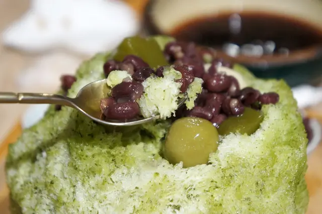 小山園抹茶刨冰鮮爽的自然茶香,QQ的抹茶凍及白玉,口感豐富有韻味