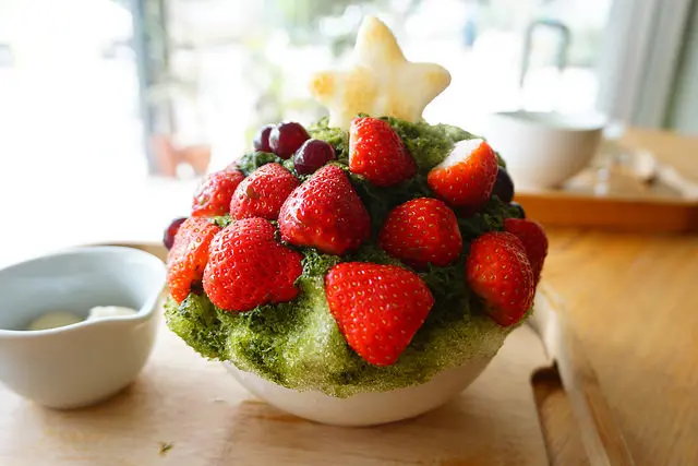 這一棵用草莓裝飾的抹茶剉冰聖誕樹