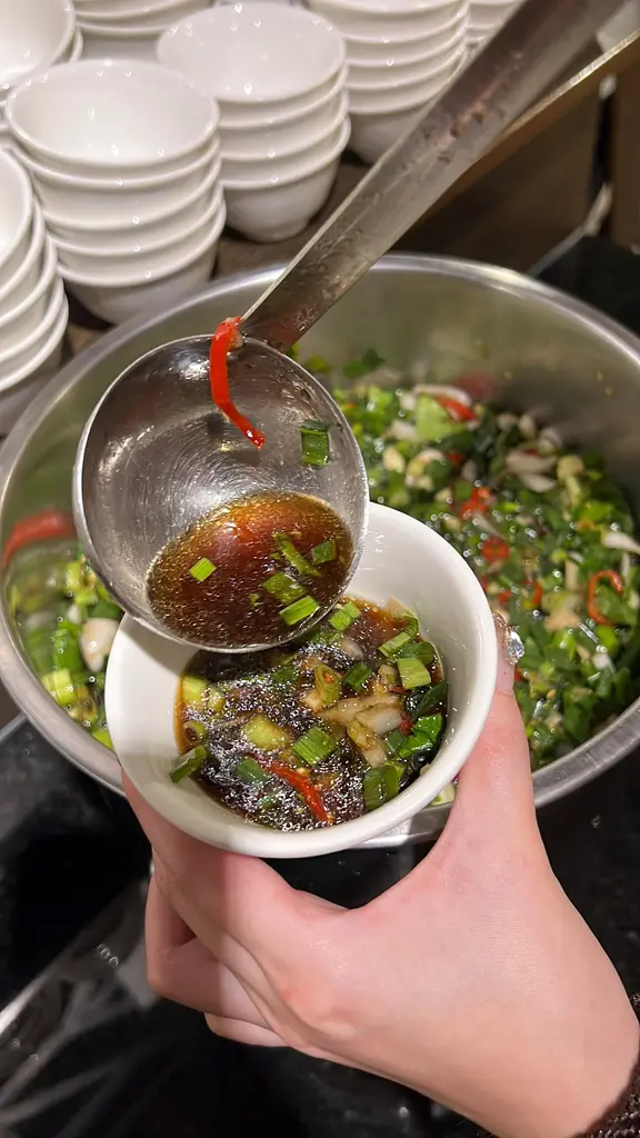 ▼點餐後,我們跑到醬料區,拿了牛老大的特製醬油,隨手一撈就是滿滿的青蔥/洋蔥/辣椒,配涮牛肉最對味!