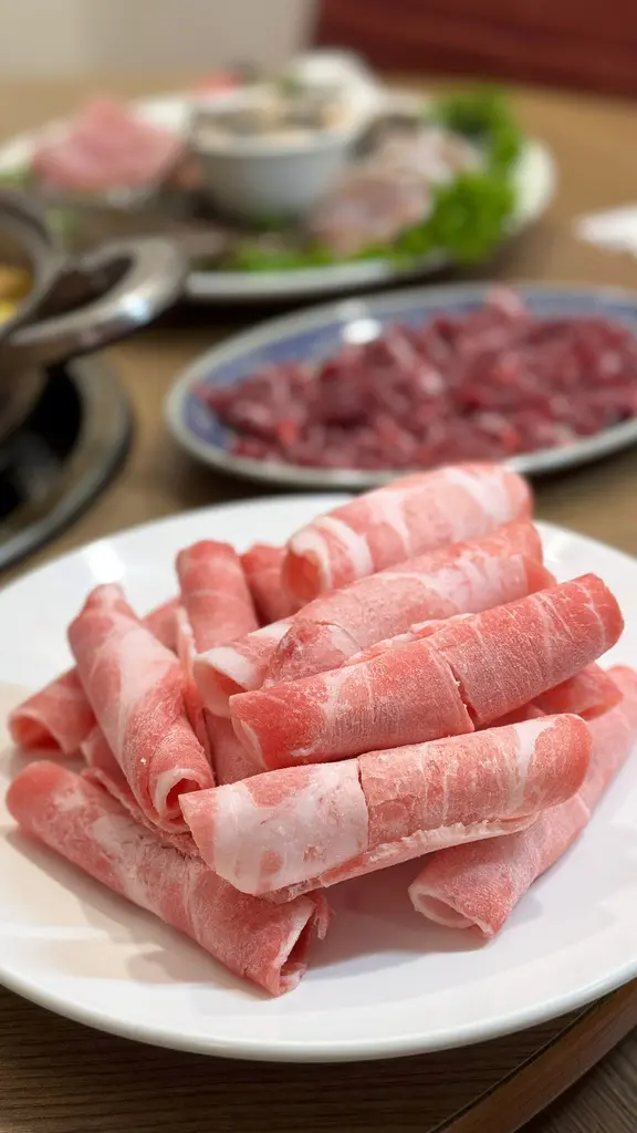 梅花豬肉片油脂均勻、厚度適中,吃起來口感又嫩又厚實。