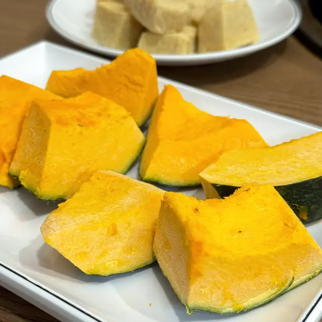 我個人愛好吃法,南瓜碾成泥和牛肉高湯混在一起~有種在喝南瓜濃湯的感覺!