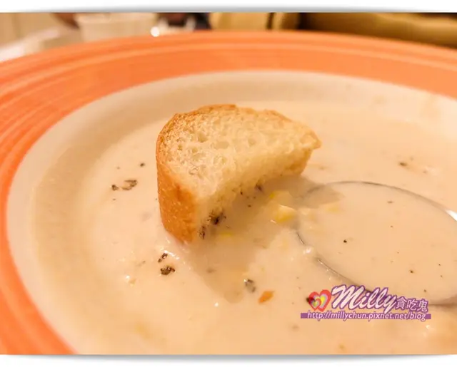 大家也能把麵包沾濃湯,吸滿濃湯的麵包會變得更加好吃!!