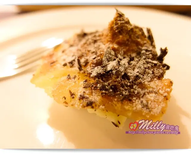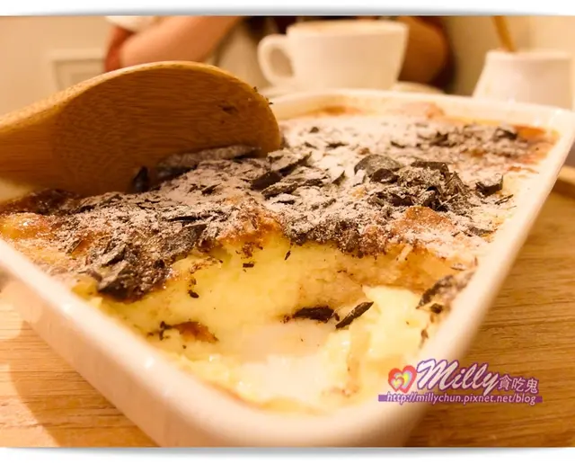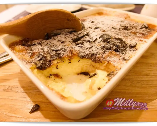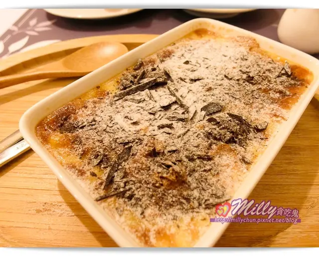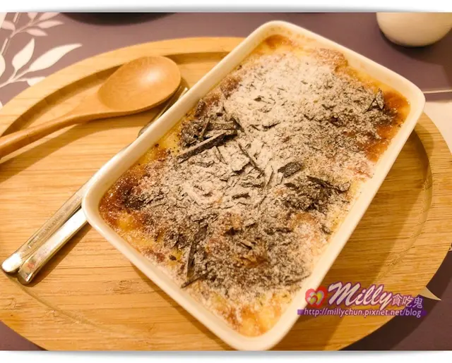 這次是義大利鄉村烤布丁,上面還撒上滿滿巧克力碎片和糖粉