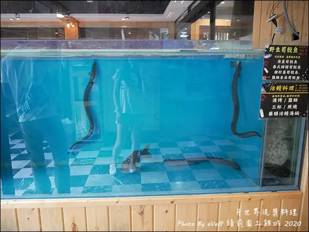 水族箱裡面的活鰻,可做清烤、鹽酥、三杯、照燒、藥膳等等
