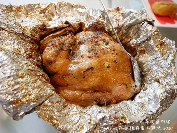 把醬汁整個鎖在裡面用錫箔紙把雞包了起來,這雞被烤的香噴噴的,雞的精華全部被留在裡面