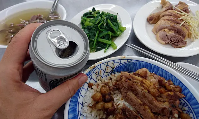喝口啤酒順順味道,再啃一塊~鴨肉的味道確實很淡…
