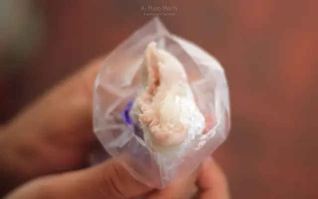 以麻糬的外皮沾上了少許的花生粉 讓原本味道較為輕柔的外皮添加上些許花生的香氣