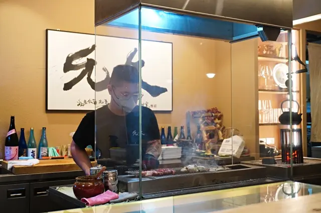 在吧檯中央烤臺採用透明玻璃讓全場欣賞料理過程