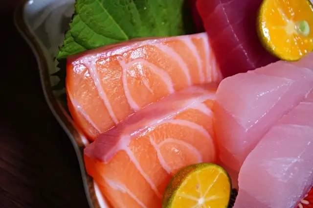 現磨山葵 , 搭配鮮美的鮭魚還有青甘