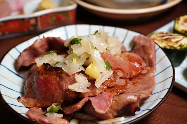 軟嫩厚切牛五花, 油花分布均勻柔嫩多汁,
