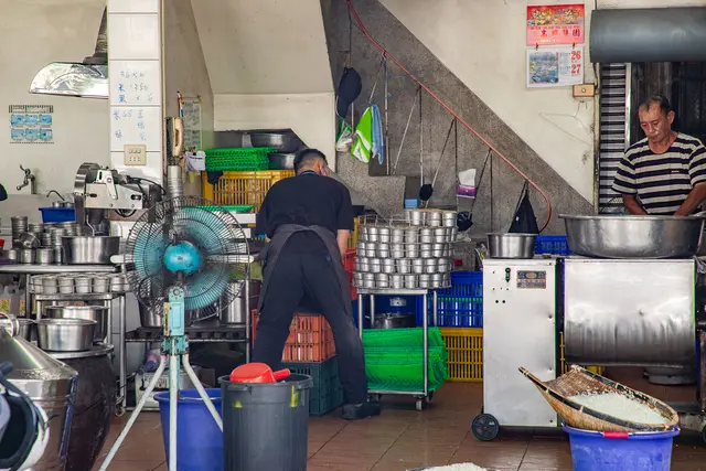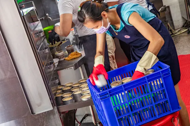 攤位旁邊是製作米糕的工廠,米糕的數量真的非常驚人,這邊做好的米糕會拿到隔壁去炊蒸,一籃一籃的米糕依序放到蒸箱裡,搞不好一天賣個上千顆應該是沒問題,超扯!