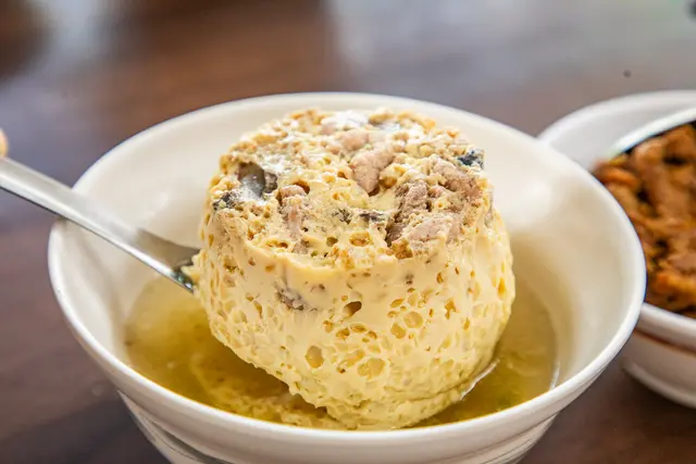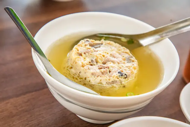 米糕的軟糯口感和滷汁確實往往是決定好米糕的重要因素,這點北港蔡三代筒仔米糕確實非常有水準,至於蒸蛋湯價格稍高,但味道有到那個程度,不過來這裡沒點碗湯配好像也不太對味,要點就點蒸蛋湯吧!