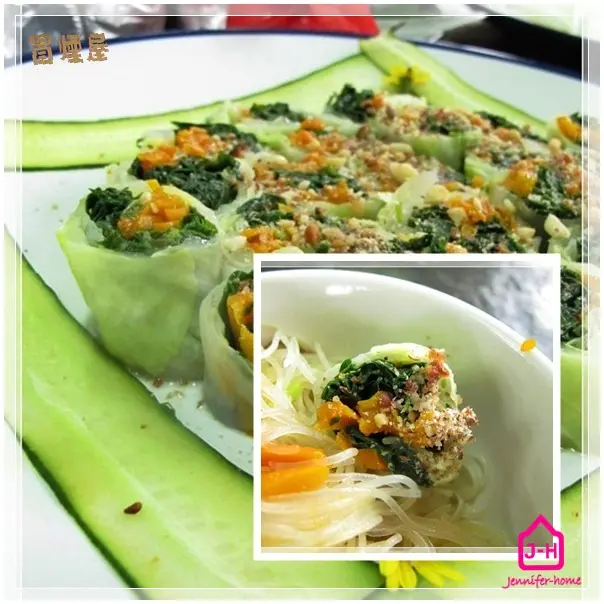 很清爽的手工菜,高麗菜包著龍葵和紅蘿蔔絲,灑著花生粒再淋上自調的酸甜醬汁