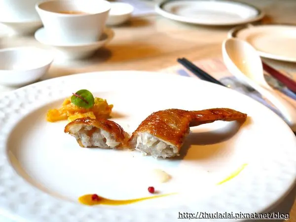 但其實所謂"釀"在客家話裡是塞入餡料之意,去骨雞翅裡塞滿燕窩,飽鼓鼓的,