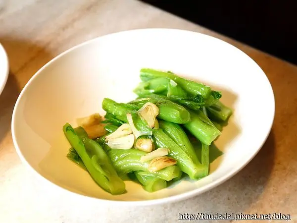 點一盤蒜炒芥菜心,簡單的蒜油香氣,飯後還有招待水果,