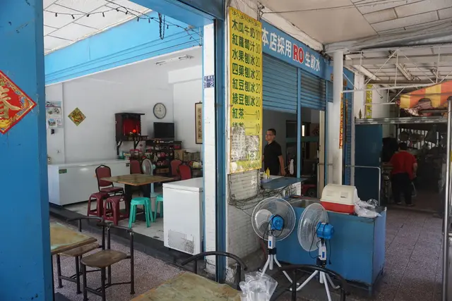 騎樓擺放幾張桌子供顧客用餐,炎熱的天氣不過不會過於悶熱,雖然只擺了幾台電風扇但也是OK的。