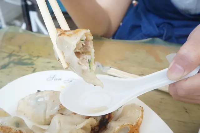 小月是比較喜歡煎餃,外皮煎得很焦偏硬的口感,其實不沾醬也很好吃。
