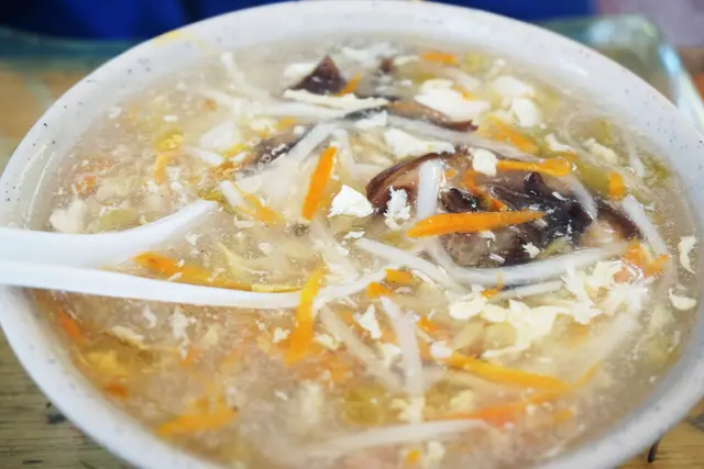 酸辣湯15元,這個也好便宜,他們家的酸辣湯口味是偏酸,有放榨菜很特別,還蠻喜歡的外面喝不到的味道。