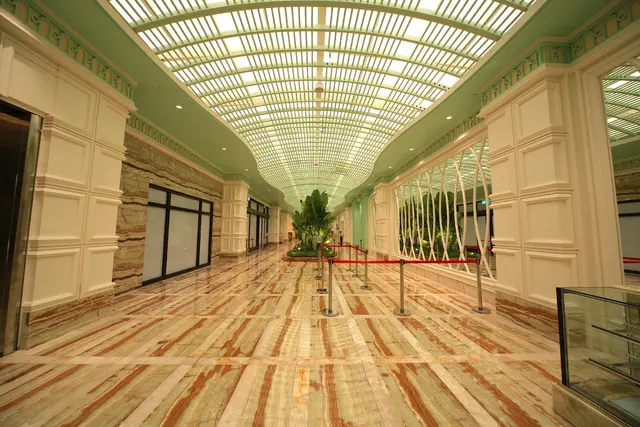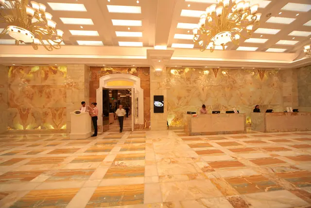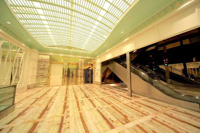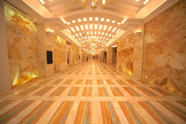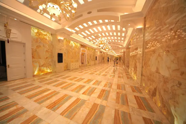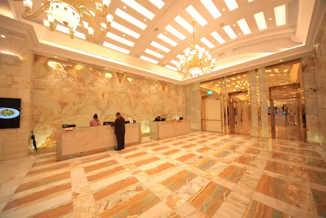 看到地板的近似玉的石材地磚令小高讚嘆(貴啊!),網路說這是林集團的老闆特地去伊朗買下整座原石山,再運回來台灣進行切割與拋光現場拼接而成的。