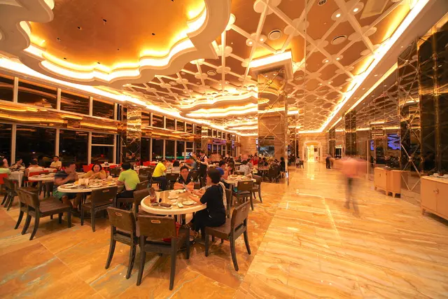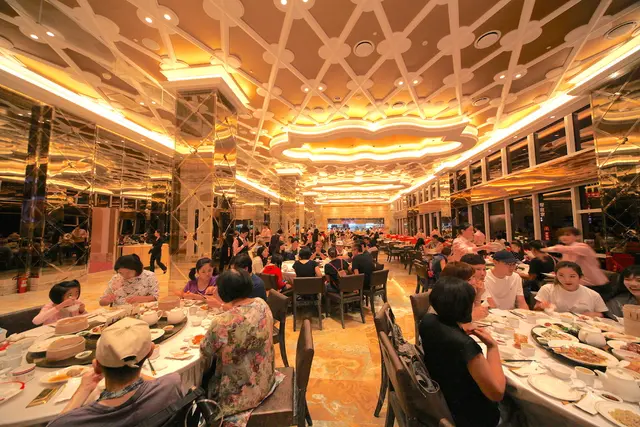 入大門2600坪超寬敞且挑高的金碧輝煌的用餐空間,裡面總共有600個座位也有獨立包廂座位。