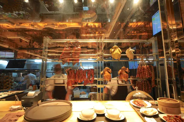 港式燒臘是港點必備的這裡可以看到烤鴨、筲箕、叉燒與臘腸等等。