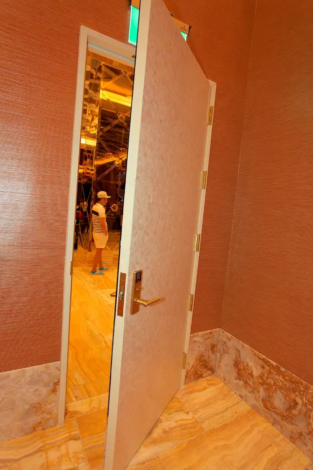 木門表面ㄧ樣是使用金色大扇貝還有人字珍珠貝做成的。