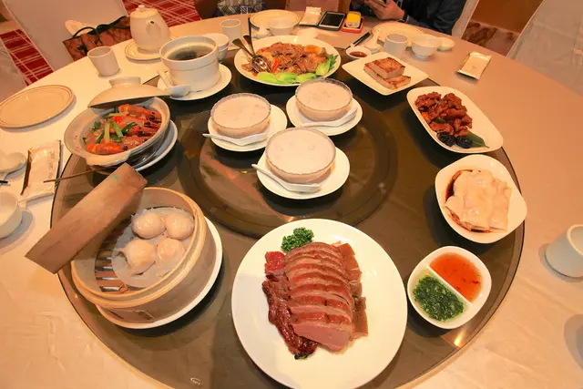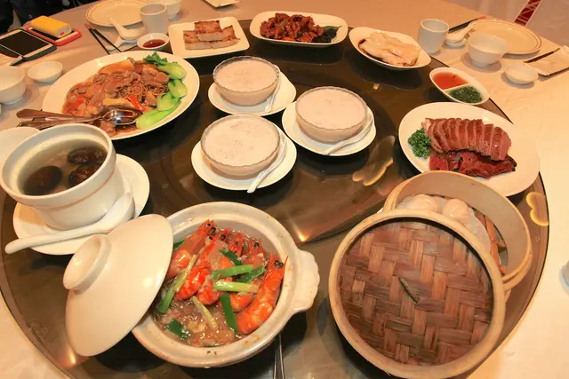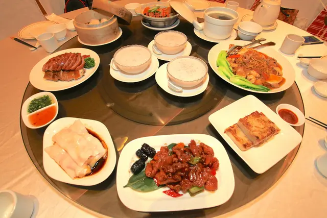 燒味三拼298元、皇宮蝦餃皇138元、蒜泥蝦仁腸粉138元、臘味蘿蔔糕98元、糖醋咕咾肉180元、花菇燉雞湯210元、鮮蝦粉絲煲400元、廣炒麵200元與芋泥西米露78元
