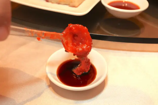 也可以沾點冰梅醬與油蔥醬來提味口感層次不同。