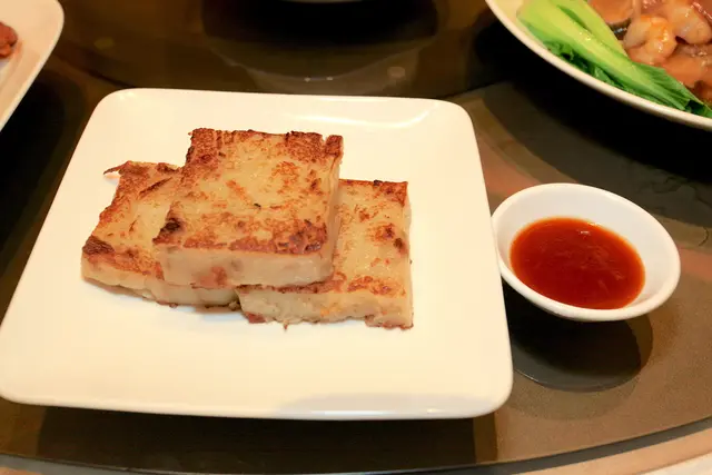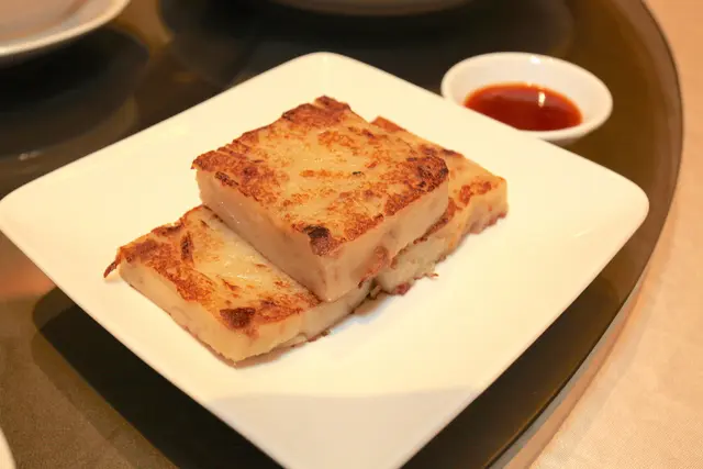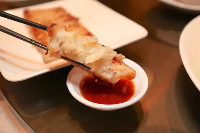 表面煎得焦黃蘿蔔糕夾起來感受到軟硬度適中,蘿蔔糕旁邊都有附上專屬的沾醬供沾取食用。