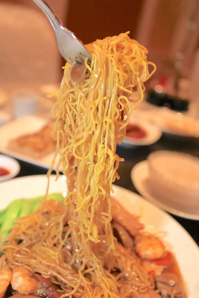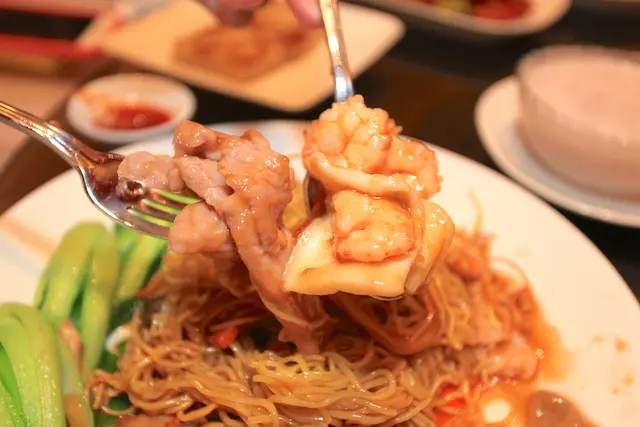 港式炒麵麵條一定要沾上湯汁才會滑順好吃。