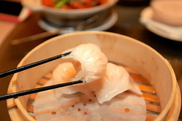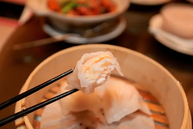 使用成本高的草蝦來做內餡裡面有四顆飽滿的蝦餃。
