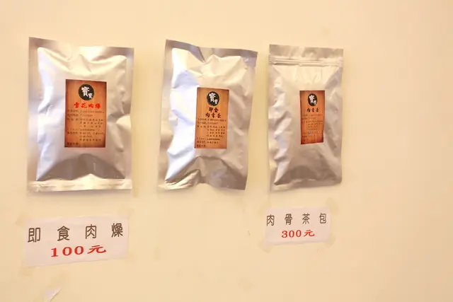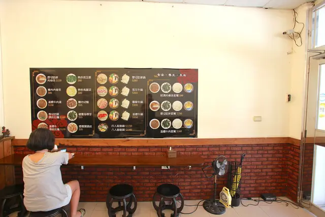 牆面上貼著菜單與即食料包供客人參考。