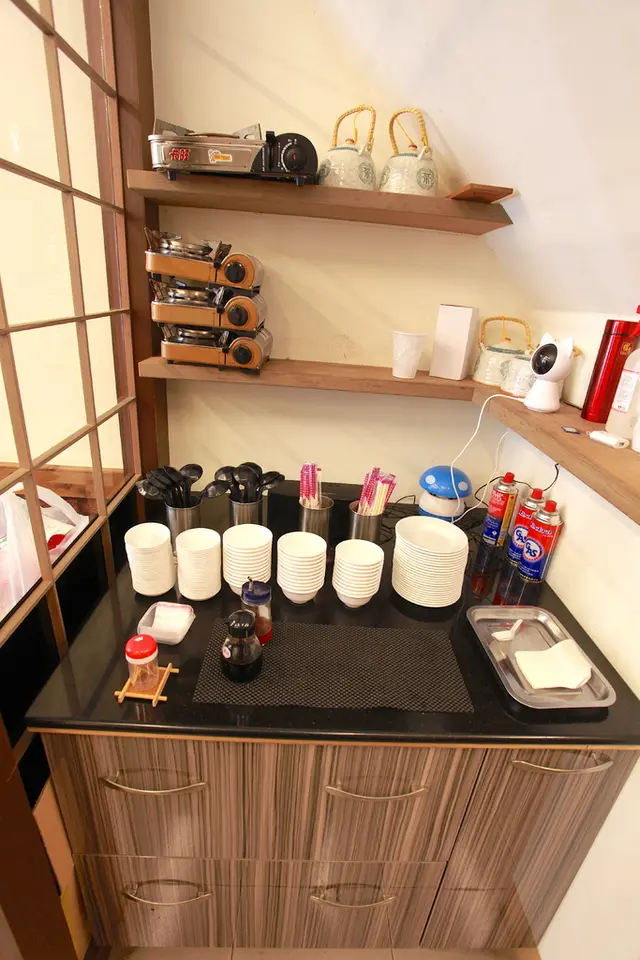 這裡是餐具與佐料自行取用區。
