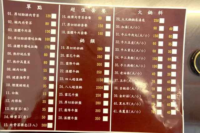 這裡的餐點分類很簡單有單點、超值套餐、火鍋及火鍋料等,整體餐點定價算是合理的價位。
