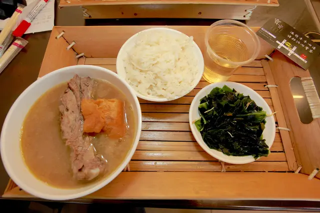 套餐裡面就是一碗肉骨茶、白飯、青菜與飲料等,雖然外觀不是很豐盛但是還蠻超值的。