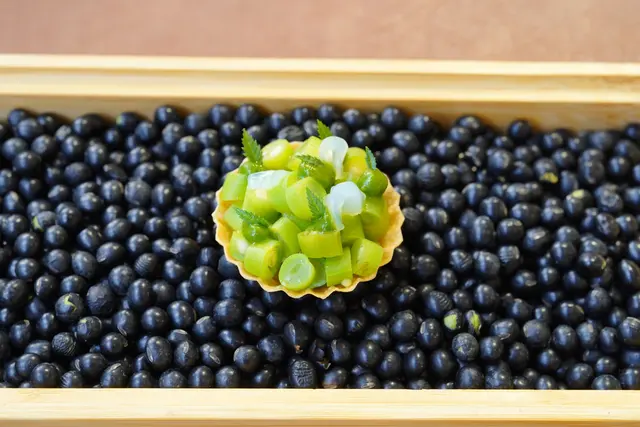 ▼光從名稱就能感受到豐富多層次的風味!掛霜腰果的甜與煙燻地瓜泥的溫暖風味,外殼脆口的塔殼搭載四季豆、發酵西瓜大根與醃製蘿蔔,層次豐富。檸檬馬鞭草油增添清新香氣,平衡整體味道,展現四季變幻的美妙。