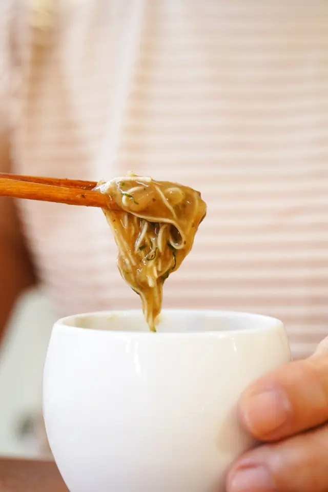 │水雲酢▼這杯則是以蜂蜜醋為基底,加入水雲和蒓菜,多了水雲滑嫩口感和蒓菜清脆口感,增加了整杯的豐富度。