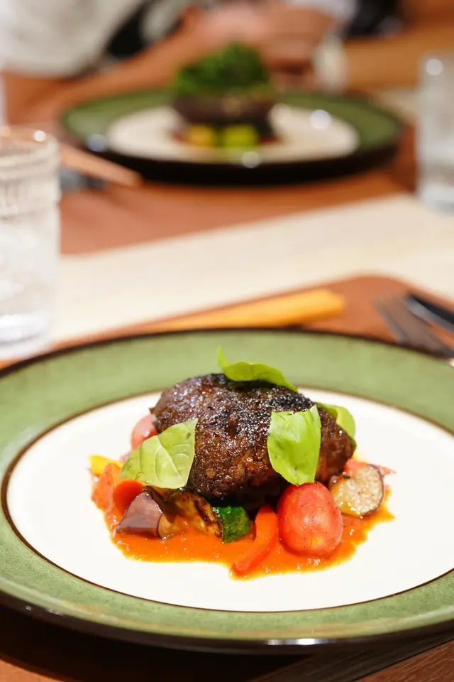 ▼彷彿將我們帶到了陽光普照的南法!迷迭香炭烤猴頭菇的香氣迷人,搭配底層濃郁的普羅旺斯燉菜,每一口都充滿了層次感。燉菜中大量蔬菜的鮮甜滋味與番茄的酸甜味道完美融合,再搭配上新鮮蔬菜的爽脆口感,整體口味清爽不油膩,讓人吃完感到身心舒暢!