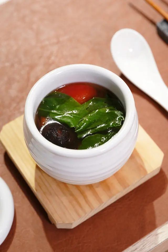 ▼這道低溫燉湯被安排在主餐後,以清爽的風味讓味蕾得到舒緩,猶如中式宴席中的清湯,在炎熱的夏天喝來格外舒適!