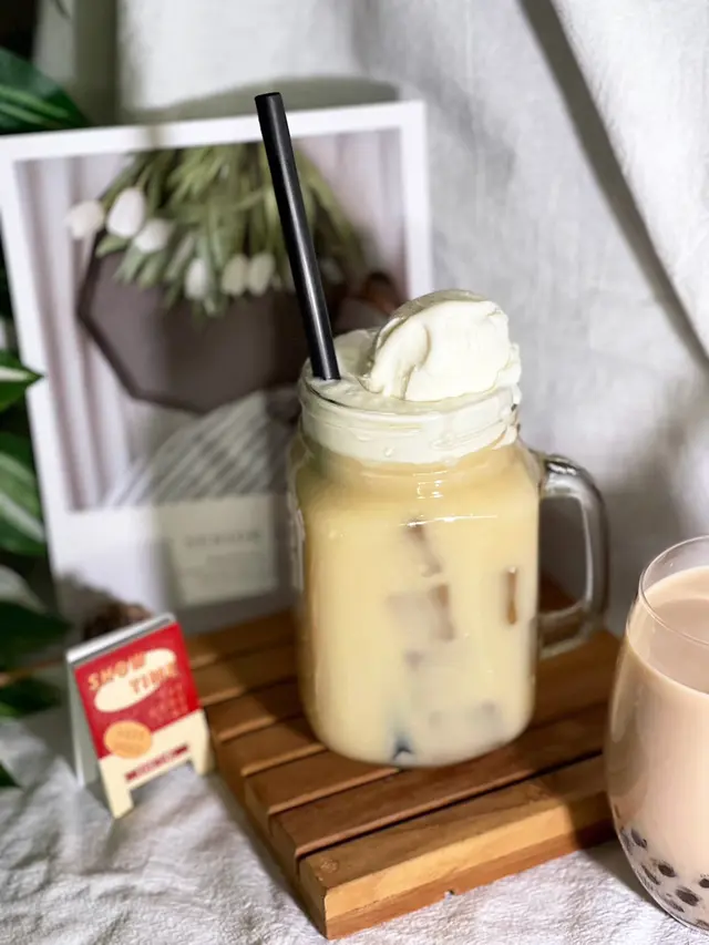 青茶的烘焙茶香搭配香草冰淇淋,沒想到喝起來真的很好喝,清爽又有奶香,非常協調,加上冰淇淋非常消暑,好適合夏天飲用!