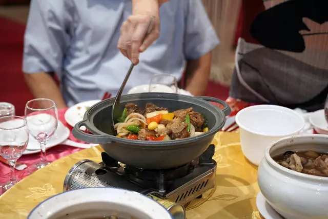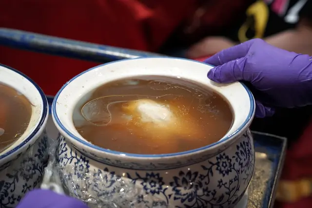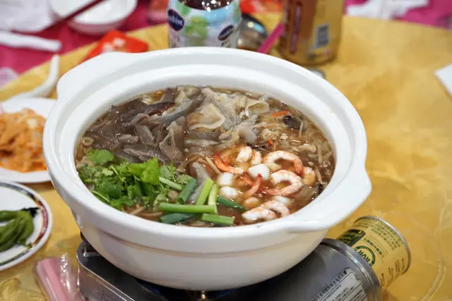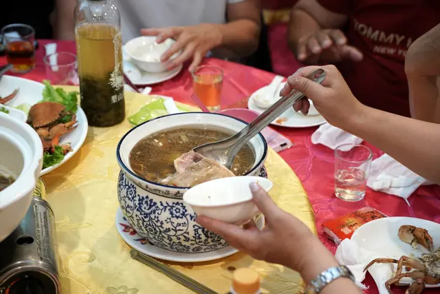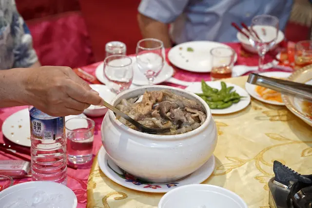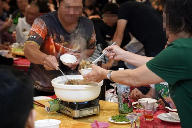 ▼魚翅燉佛跳牆是婚宴上必備的壓軸菜,用料豐富,湯頭濃郁鮮美,即便吃到最後很飽了,還是得來一碗才滿足,畢竟看大家吃得這麼香~