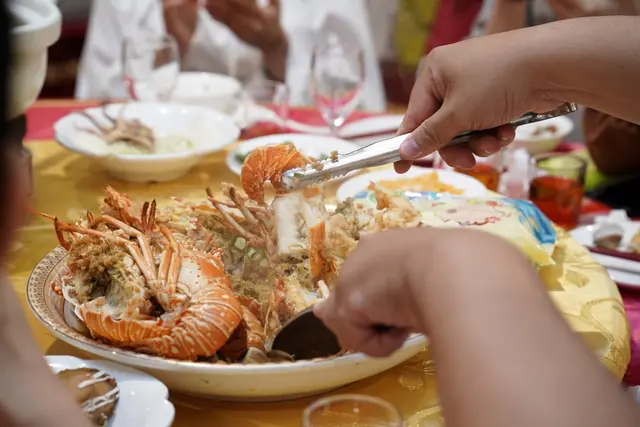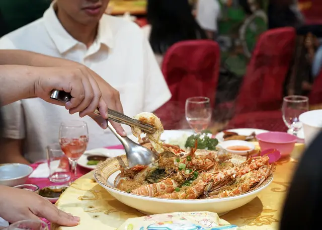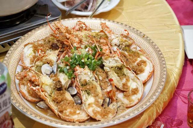▼金蒜清蒸小龍蝦也是道經典的辦桌菜色,龍蝦肉質Q彈飽滿,蒜香十足,讓人越吃越餓耶…好期待下一道菜!