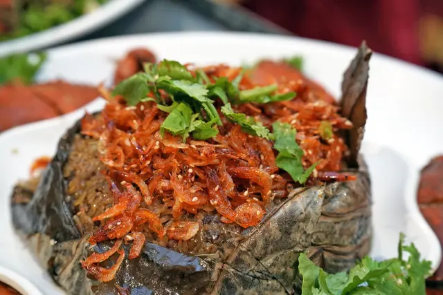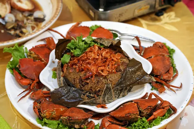 ▼佳餚繼續上菜,紅蟳拼櫻花蝦原籠米糕,也是辦桌菜長青!紅蟳肥美鮮甜,櫻花蝦香氣逼人,米糕軟Q不黏牙,一碗米糕、澱粉下肚,終於安撫躁動的肚子,不過還是要吃到最後一刻!