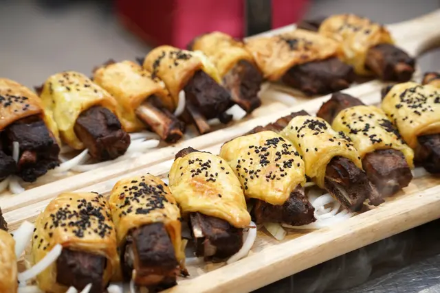 ▼酥皮焗烤豬肋排是小朋友的最愛,同桌小朋友把媽媽的份也包了😆豬肋排肉質軟嫩刷上醬汁烤得香濃,啃起來很唰嘴。