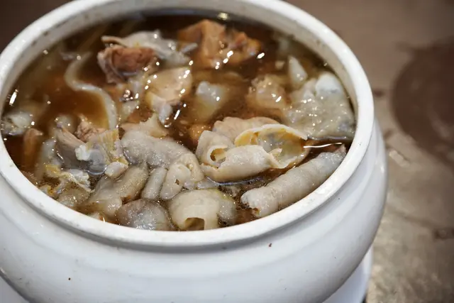 ▼虎掌燒山藥百果是一道豐盛的燉菜,虎掌就是豬筋蹄,和山藥、百果、紅椒等食材燉得軟透入味,又是一道開胃下飯的好菜!