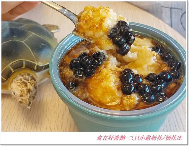 好奇的是奶花究竟是啥東東,吃起來口感既像奶酪也像豆花,相當特別,另外還加了珍珠以及來屏東必吃的綠豆蒜,雖說看起來整杯都是料,不過份量其實不是很多,當成點心吃是還ok。