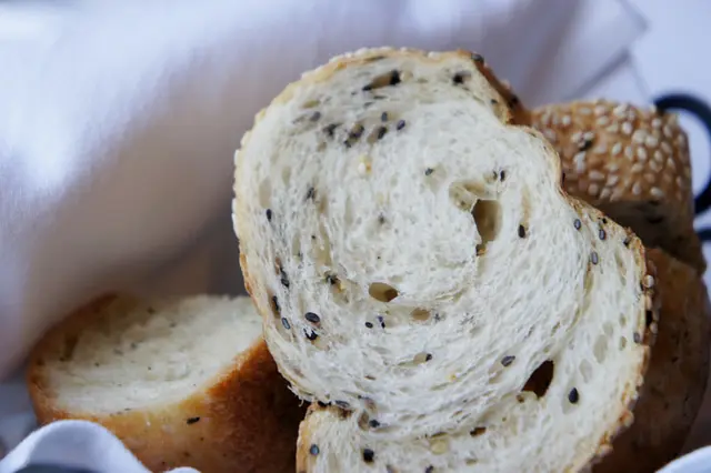 芝麻法國口感紮實鬆軟,吃得到麥香及芝麻香,佛卡夏鬆鬆厚厚的,口感柔韌有勁,抹上奶油吃更棒